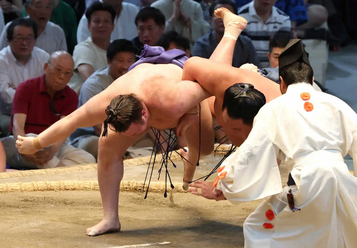 東前頭筆頭の安青錦(21=安治川部屋)は40歳のベテランで西前頭4枚目・玉鷲(片男波部屋)を下手投げで転がし、10勝2敗とした。今年春場所の新入幕から3場所連続で2桁白星で、優勝争いトップを走っている。玉鷲は4敗に後退した。