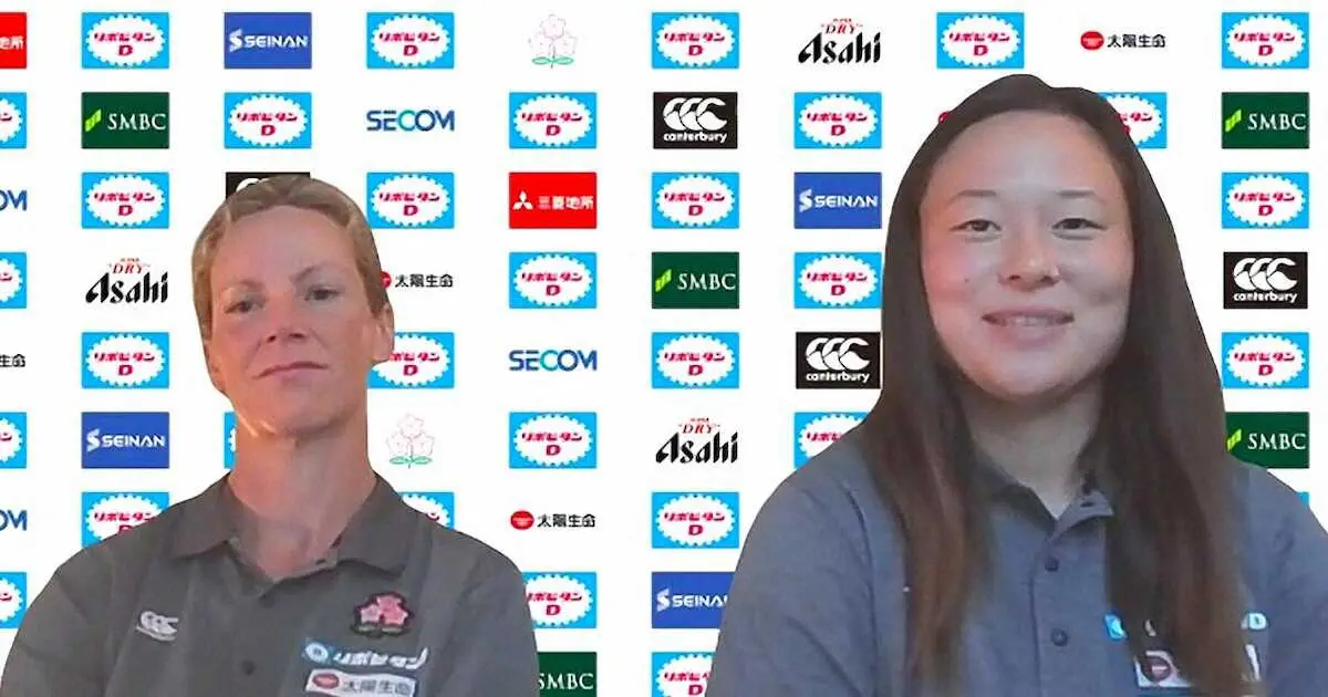 オンライン会見を行ったラグビー女子日本代表のFL長田いろは主将(右)とレスリー・マッケンジーHC
