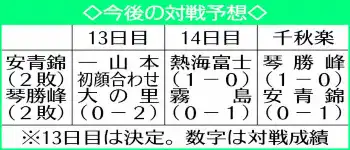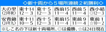 ウクライナ出身の21歳のホープは阿武咲、大の里に続いて3人目となる新入幕から3場所連続の2桁勝利。新十両に昇進した昨年九州場所からは5場所連続の2桁勝利で、これは大の里に続く2人目の快挙となった。その大の里は5場所目の昨年夏場所で12勝して初優勝しており、同じ平幕の琴勝峰と2敗で並んで迎える残り3日間は初優勝を意識する時間となる。