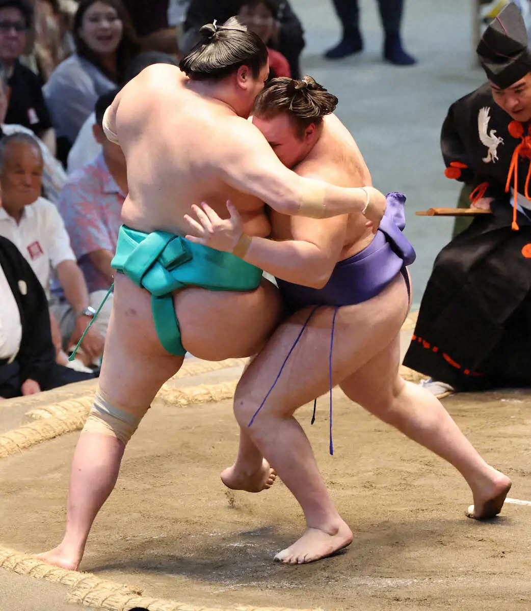 東前頭筆頭・安青錦(21=安治川部屋)が3敗の西前頭8枚目・一山本(31=放駒部屋)を寄り切って琴勝峰と並ぶ2敗を守った。初対戦どころか、稽古経験もない相手の突きを下から跳ね上げて左差し。深くねじ込むと、切り返しながら寄り切った。