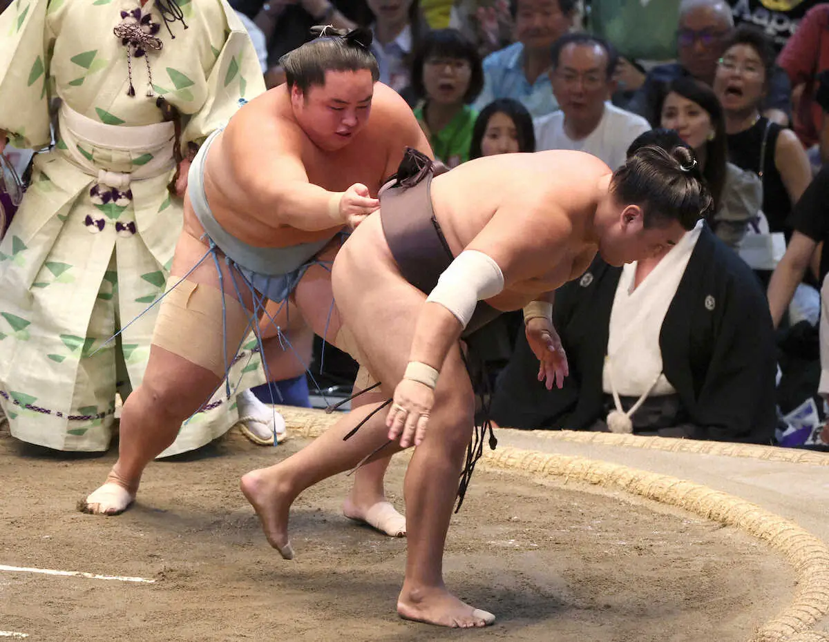 <大相撲名古屋場所14日目>安青錦(左)を寄り切りで下した草野(撮影・椎名 航) Photo by スポニチ 琴勝峰2敗キープ!初優勝へ単独トップで千秋楽へ 安青錦は草野に敗れて3… ギャラリーで見る この記事のフォト 2025年07月26日の画像一覧 もっと見る 2025年07月26日の画像をもっと見る