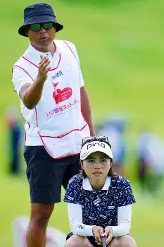 19年に結婚した男子ツアー2勝の谷口拓也(45)がキャディーを務める。グリーン上のラインの読みは夫に任せて「私はそのまま打つ。ライン読みがいいのでうまく入っている」と二人三脚で快進撃を続けている。