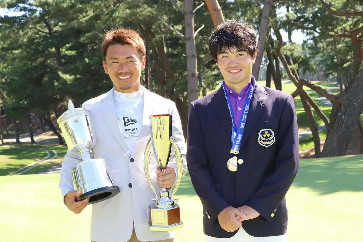 九州オープン最終日優勝した三重野里斗(左)とベストアマの下園航太