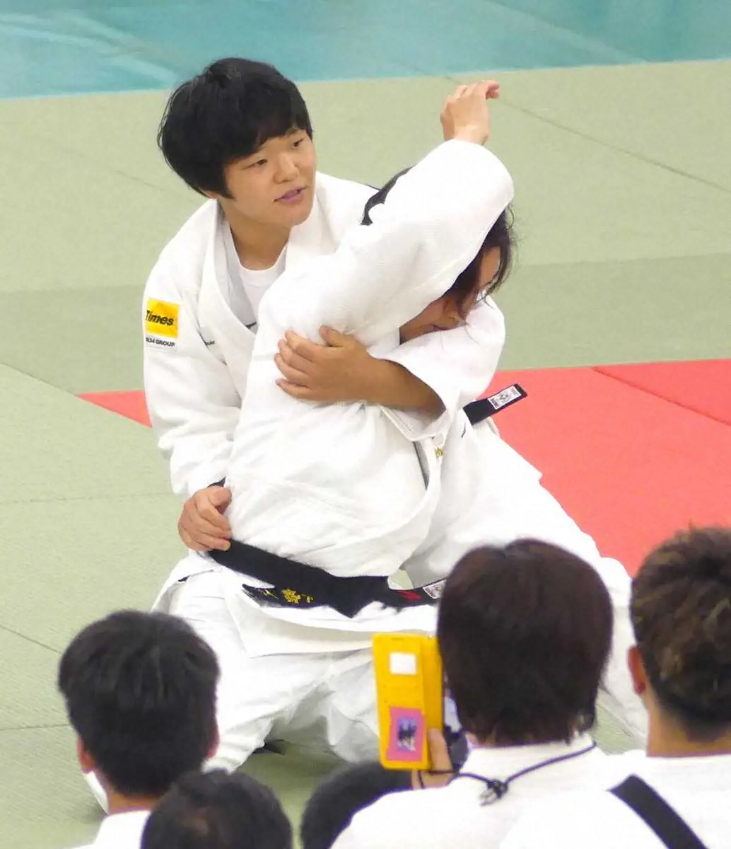 全日本少年少女柔道錬成大会で講師を務めた(左から)橋本壮市、嘉重春樺、田嶋剛希、玉置桃 Photo by スポニチ 【柔道】嘉重春樺「得意技を知ってもらう機会になった」世界を制した寝技… ギャラリーで見る この記事のフォト 2025年08月03日の画像一覧 もっと見る 2025年08月03日の画像をもっと見る