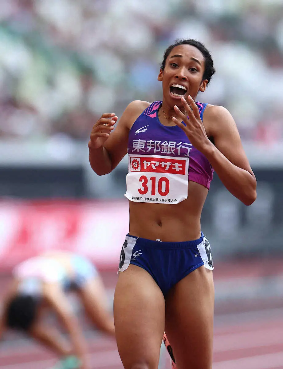 陸上の富士北麓ワールドトライアルが3日、山梨・富士山の銘水スタジアムで行われ、女子200メートル決勝で井戸アビゲイル風果(東邦銀行)が22秒79(追い風1・0メートル)の日本新記録で優勝した。