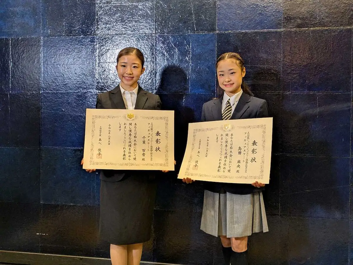 千葉百音&島田麻央、初戦サマーカップへ「演技面に力を」「楽しめるように」文科省表彰出席