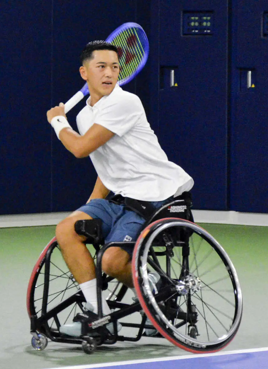 ラリーでの強打の精度向上をテーマに掲げ、約1時間鋭いショットを徹底的に打ち込んだ。国枝慎吾さん以来の快挙へ「過去一番(自身を)追い込んでいる。負けない自信がある」と話した。