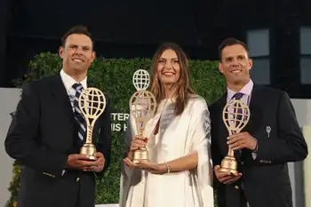 女子テニス元世界ランキング1位のマリア・シャラポワさん(38=ロシア)が23日(日本時間24日)、米ロードアイランド州ニューポートで開かれた国際テニス殿堂入り式典に出席した。AP通信が伝えた。同じく殿堂入りした男子ダブルス四大大会通算16勝の双子、ボブ&マイクのブライアン兄弟(47)とともに、ラケットの形をしたトロフィーを受け取った。