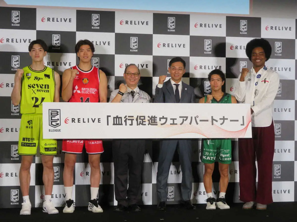 東京都内で会見に臨んだ島田慎二チェアマンは「いつかご一緒したいと思っていた。光栄でありがたい。ユニホーム全てにリライブエンジンが搭載される。少しでもケガのない状況をつくりたい」と期待。バスケット経験者でタレントの副島淳は「(リライブエンジン搭載で)来季はBリーグが激変するのではないかと。めちゃくちゃ期待している」と話した。