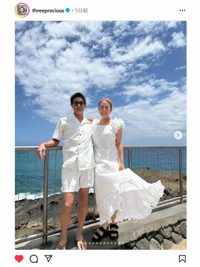 佐伯は「最初はほんの軽いノリで撮ろうと決めたハワイでのウェディングフォト 皆んなの協力で本当想像してたよりも遥かに素敵でアットホームな写真が撮れた」とし、ハワイで撮影したという写真をアップ。