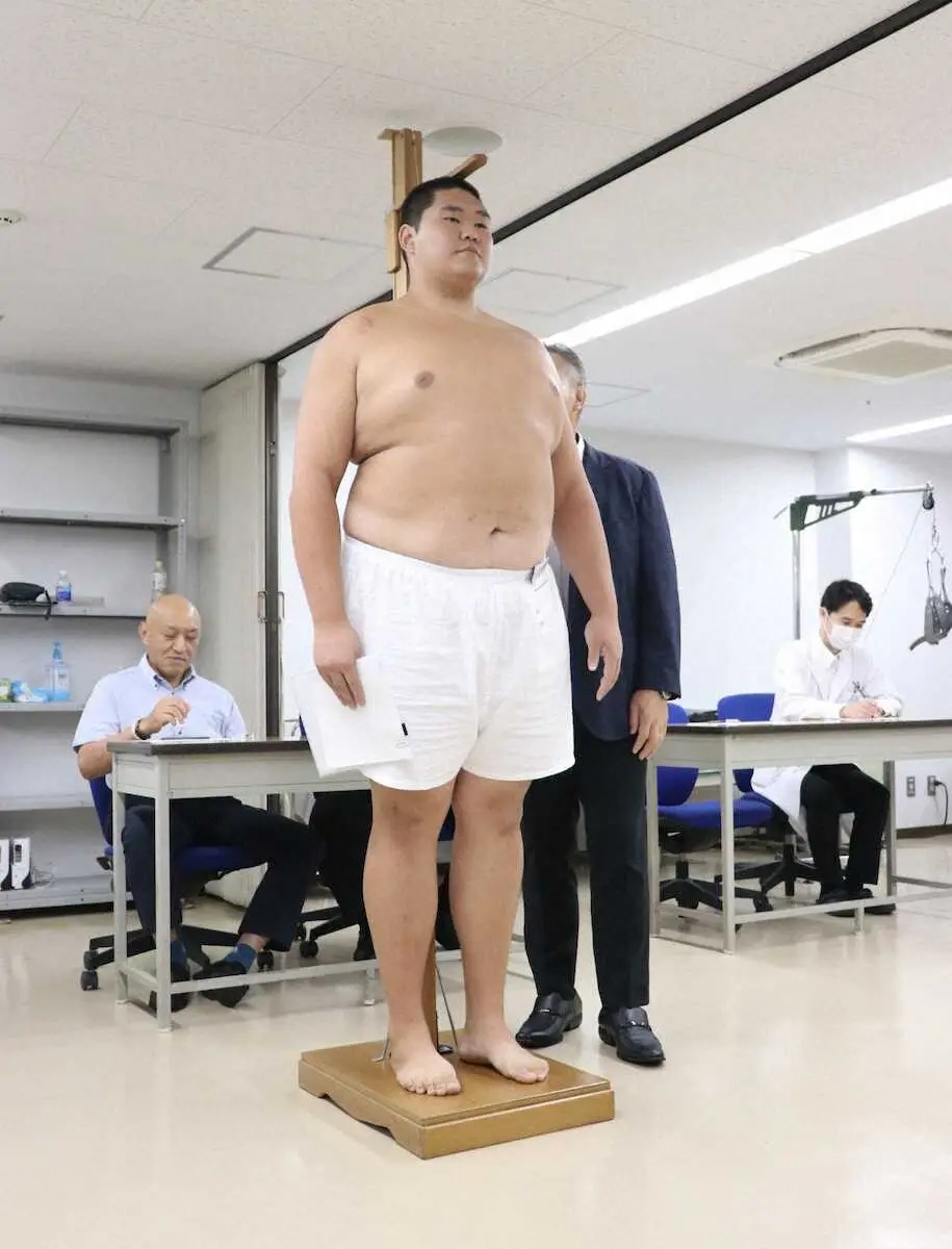 今年の1月に玉ノ井部屋の門を叩いた。入門当初から部屋の関取らと稽古。検査を終え「ようやく入れましたね」とホッとした様子で話した。
