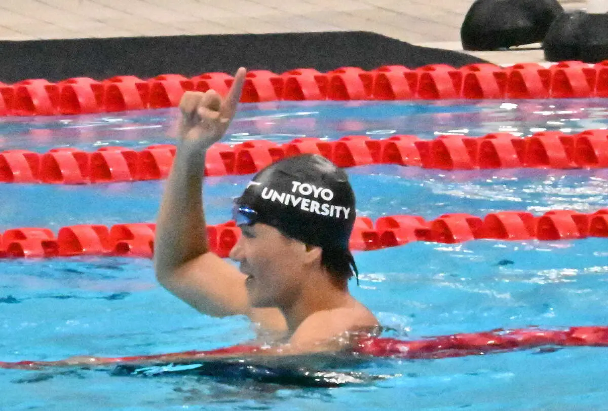 この日はメドレーリレーの予選、決勝を含めて1日4レースが予定されていたためか、午前中の予選ではラストを流し、全体5番手での通過。決勝は2コースを泳ぐことになり、150メートルまでは小方颯(日大4年)に遅れを取って3番手でターンしたが、ラストの自由形で逆転。
