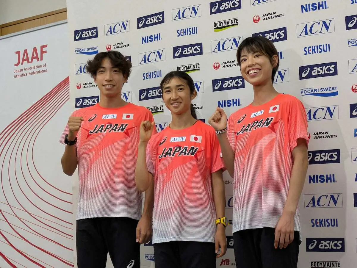 13日に国立競技場で開幕する陸上世界選手権東京大会の日本代表会見が11日、都内で行われ、男子3000メートル障害の三浦龍司(SUBARU)、女子1500、5000メートルの田中希実(ニューバランス)、女子5000、1万メートルの広中璃梨佳(日本郵政グループ)が出席した。