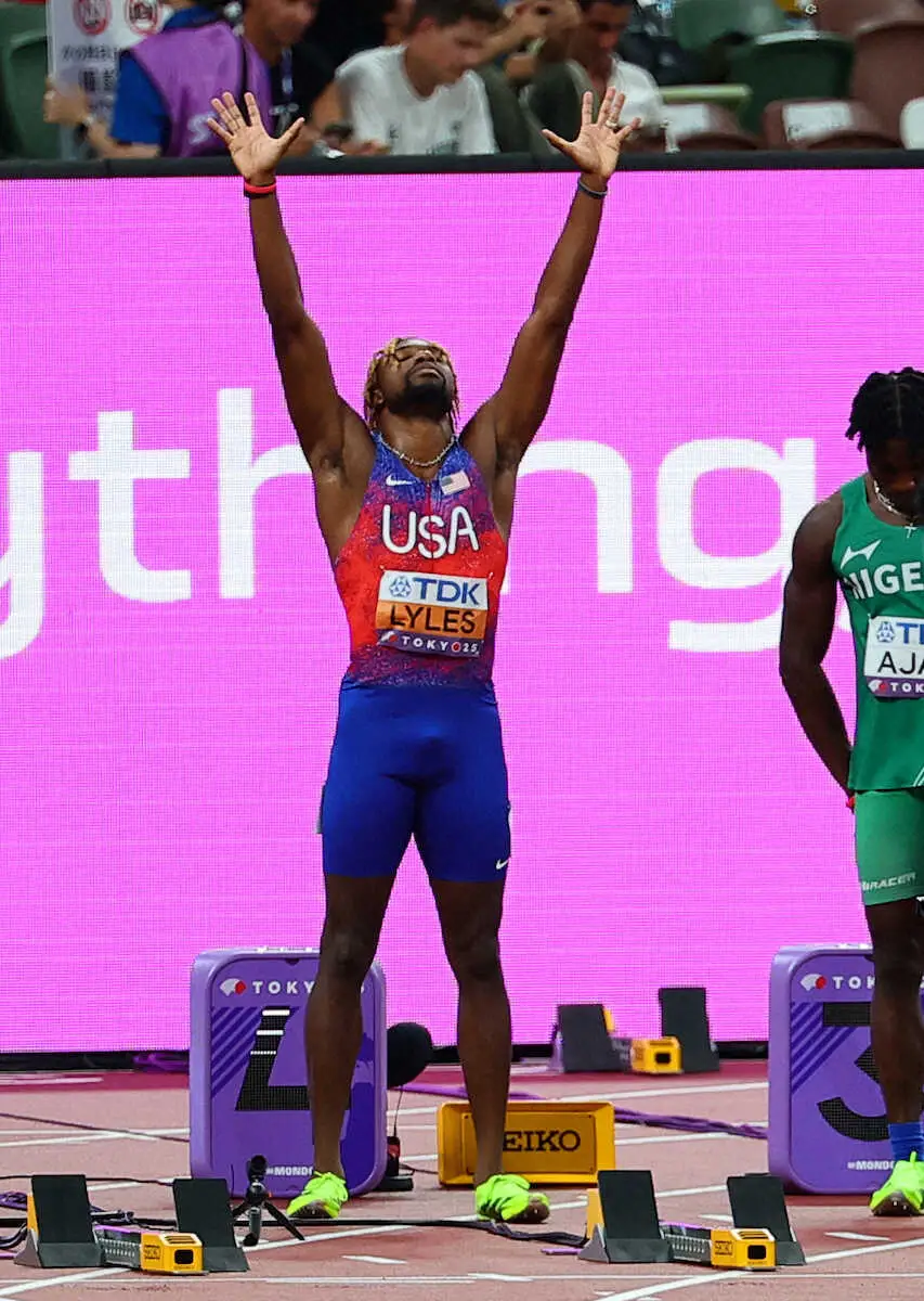 スタート前に「元気玉」ポーズするライルズ(撮影・藤山 由理) Photo by スポニチ 【世界陸上】ライルズは9秒89で銅 決勝では元気玉、かめはめ波ポーズ披露… ギャラリーで見る この記事のフォト 2025年09月14日の画像一覧 もっと見る 2025年09月14日の画像をもっと見る