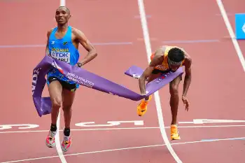 残り1キロで5人の集団から、シンブ、ペトロス、イリアス・アウアニ(イタリア)の3人によるトラック勝負へ。ペトロスが抜け出したが直線に入ってシンブが猛追し、2人で並んでゴールテープを切った。