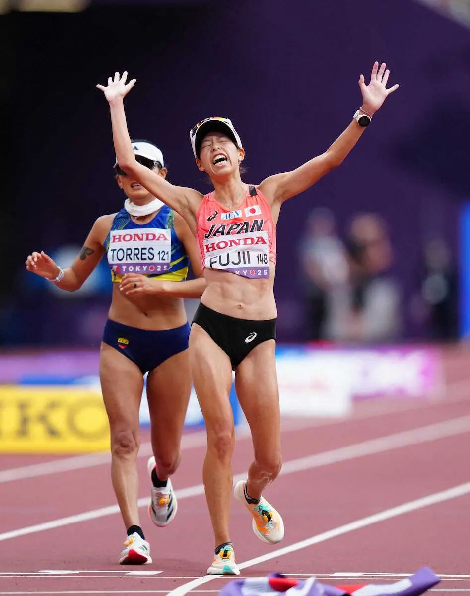 <世界陸上東京・7日目>女子20キロ競歩決勝に臨む藤井(撮影・藤山 由理) Photo by スポニチ 【世界陸上】20キロ競歩・藤井菜々子が日本女子初の銅メダル!4位と同タイ… ギャラリーで見る この記事のフォト 2025年09月20日の画像一覧 もっと見る 2025年09月20日の画像をもっと見る