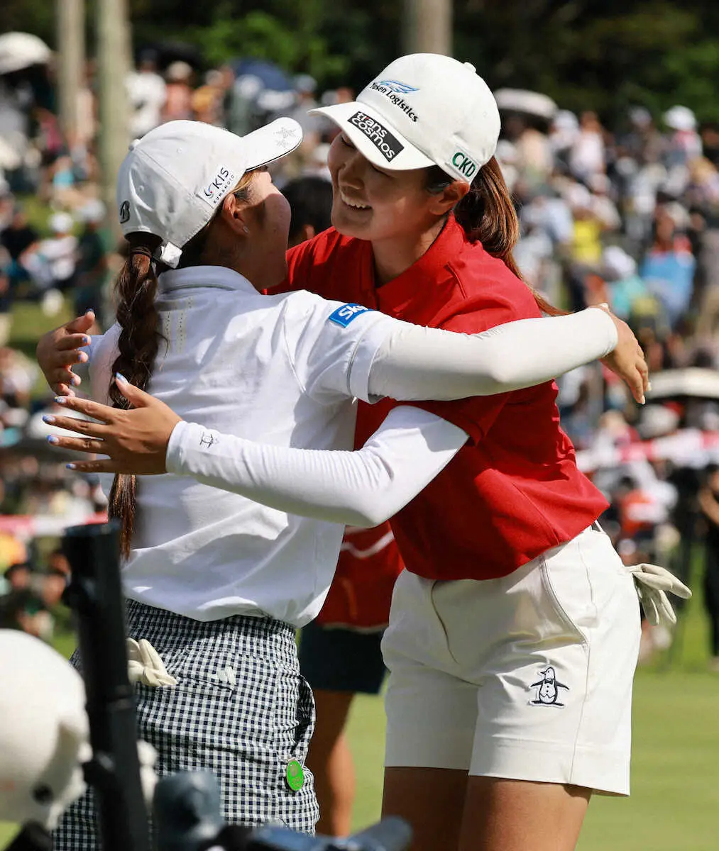 <住友生命レディス東海C・最終日>17番、バーディーを奪い、首位に並んだ荒木優奈はキャディーとグータッチ(撮影・井垣 忠夫) Photo by スポニチ 【女子ゴルフ】ルーキー荒木優奈 2勝目届かず涙 首位タイで迎えた最終18… ギャラリーで見る この記事のフォト 2025年09月21日の画像一覧 もっと見る 2025年09月21日の画像をもっと見る
