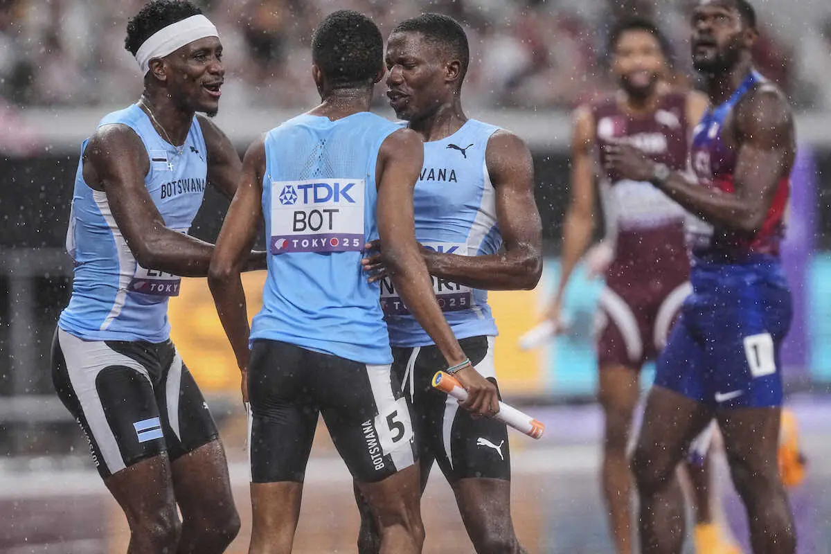 ボツワナはアンカーに渡った時点で2位だったが、400メートルを制したブサンコリン・ケビナチピが米国のアンカーで400メートル障害で金メダルを獲得したベンジャミンをラスト20メートルでかわした。大雨の中のレースで逆転で初の金メダルをもたらせた。