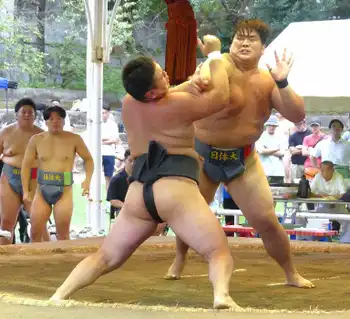 日体大は、先鋒・中上景虎(3年)に代わって島ノ江貴斗(3年)を投入。団体戦初出場の島ノ江が日大の一戸を押し倒しで破り、起用に応えて先制した。二陣戦は日体大・バヤルボルド(2年)と日大・西出大毅(1年)の対戦。バヤルボルドにとって西出は過去5戦全勝の得意相手だったが、引き落としで敗れた。そこから白星と黒星が交互に続く一進一退の攻防に。3―3で迎えた七陣戦、日体大のクリストファー主将(4年)が日大の鮫島輝(1年)を押し出して優勝に王手をかけた。そして副将戦、日体大の杉本弘樹(3年)が日大の本田豪太郎(3年)を激しい突っ張りで圧倒し、2年連続7度目の優勝を決めた。