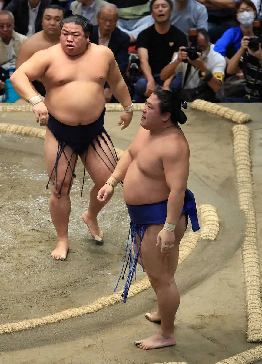 大関獲りの若隆景は5敗目を喫し、昇進が極めて厳しくなった。立ち合いで低く当たったが、平戸海に上体を起こされて寄り切られ、「先に(相手に)攻められたので、そこは反省してまた明日からしっかり集中して」と必死に前を向いた。