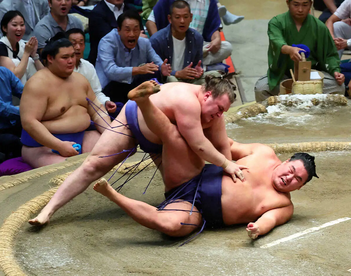 豊昇龍 安青錦に今場所初黒星 先場所3連続金星配給の3人へのリベンジ完了ならず