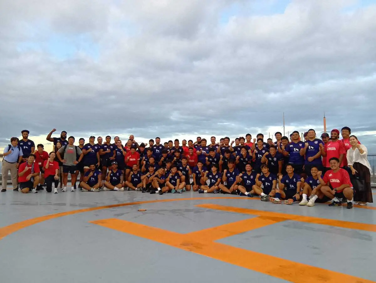 ラグビーリーグワン2部の花園近鉄ライナーズが26日、“あべののてっぺん”で1部昇格を誓った。選手やスタッフの結束力向上のため、チームビルディングを開催。「決起ウォークinあべのハルカス」と銘打たれた今回のイベントに約80人が参加し、絆と体力の強化を図った。