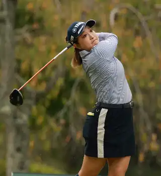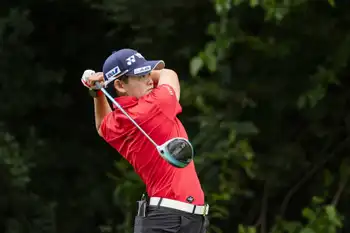 <日本女子OP第2日>9番、打球の行方を見つめる中村心(撮影・井垣 忠夫)