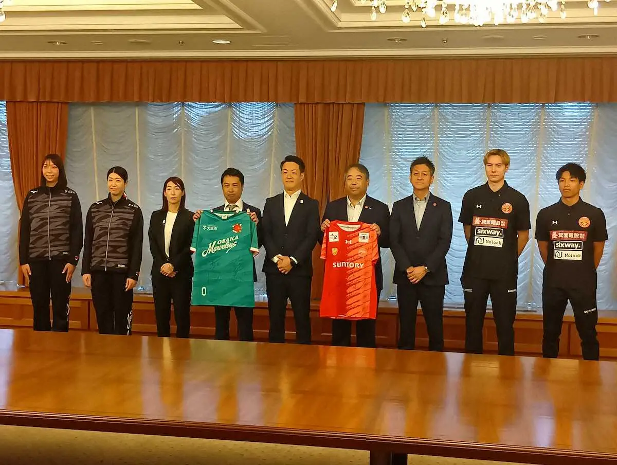 サントリーからはサントリーホールディングス株式会社スポーツ事業部長の森田壮一氏、栗原圭介GM、高橋藍主将、喜入祥充副主将が、大阪マーヴェラスからは日本たばこ産業株式会社渉外部部長の山原猛志氏、竹嶋優子GM、田中瑞稀主将、成瀬ももかが訪問。市長公室で横山英幸市長らに今季の飛躍を誓った。
