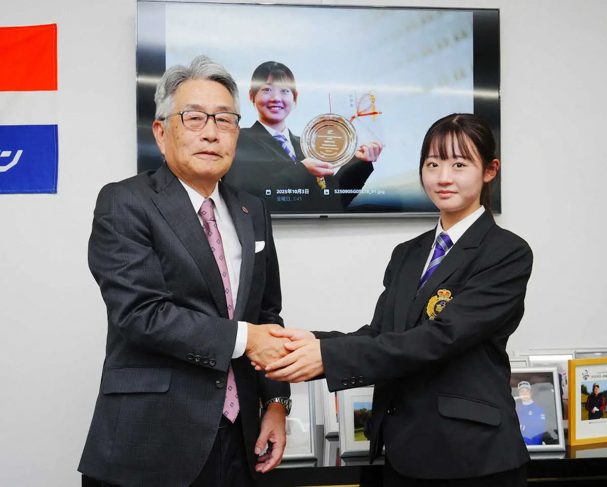 9月のパンパシフィック大学ゴルフスーパーリーグ(スポニチ共催)の個人戦で女子最上位となり出場権獲得。小菅洋人社長から「予選通過を目指して」と激励された。今季初Vの入谷響、荒木優奈、菅楓華と同じ05年生まれ。「凄いと思う。同じように頑張りたい」と意欲を示した。