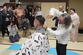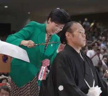 小池百合子都知事「後進の育成に励んでもらいたい」 同郷の元貴景勝・湊川親方の断髪式ではさみ
