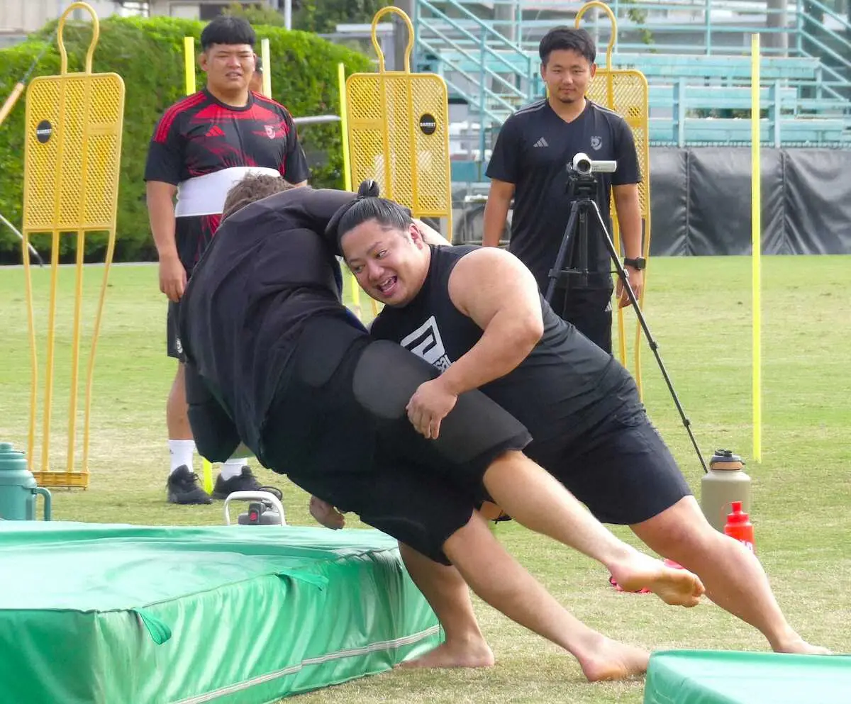 モールの練習で押し合うBR東京のFW陣と中村部屋の力士たち(撮影・前川 晋作) Photo by スポニチ ラグビーBR東京 大相撲中村部屋と合同練習 力士パワーに驚嘆「浮かされ… ギャラリーで見る この記事のフォト 2025年10月11日の画像一覧 もっと見る 2025年10月11日の画像をもっと見る