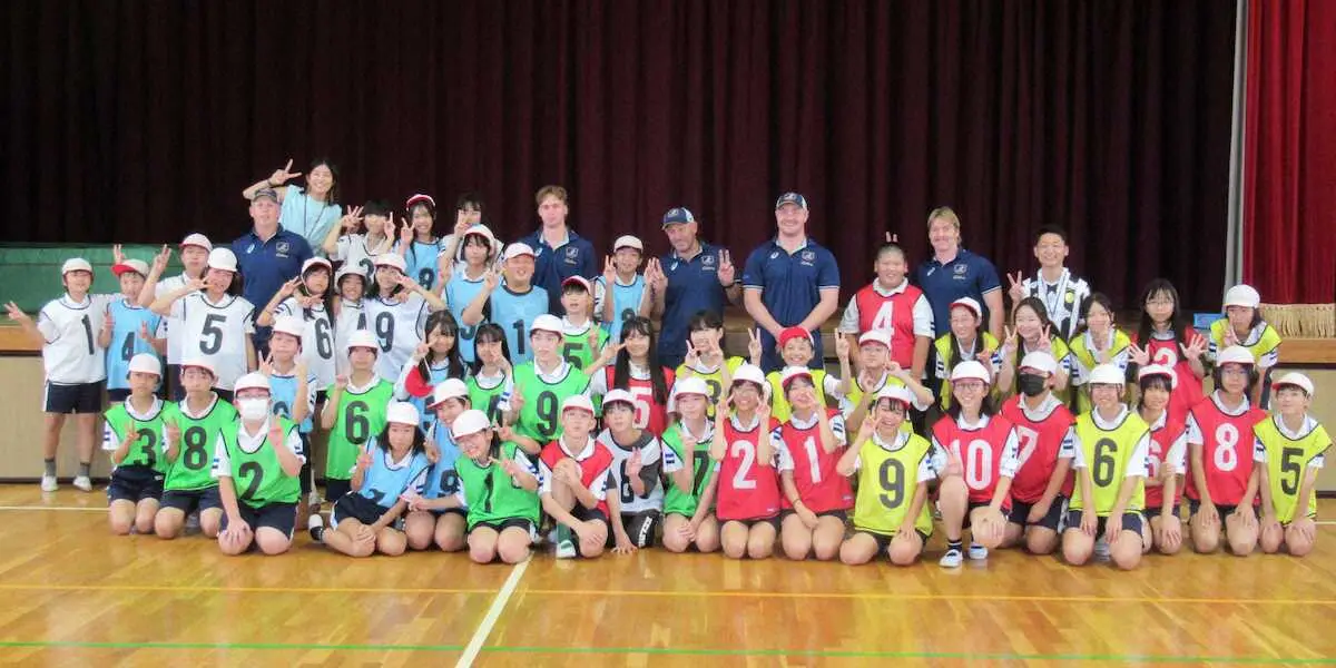 【ラグビー】オーストラリアA代表の3選手が小学校訪問 ラグビー体験で大歓声