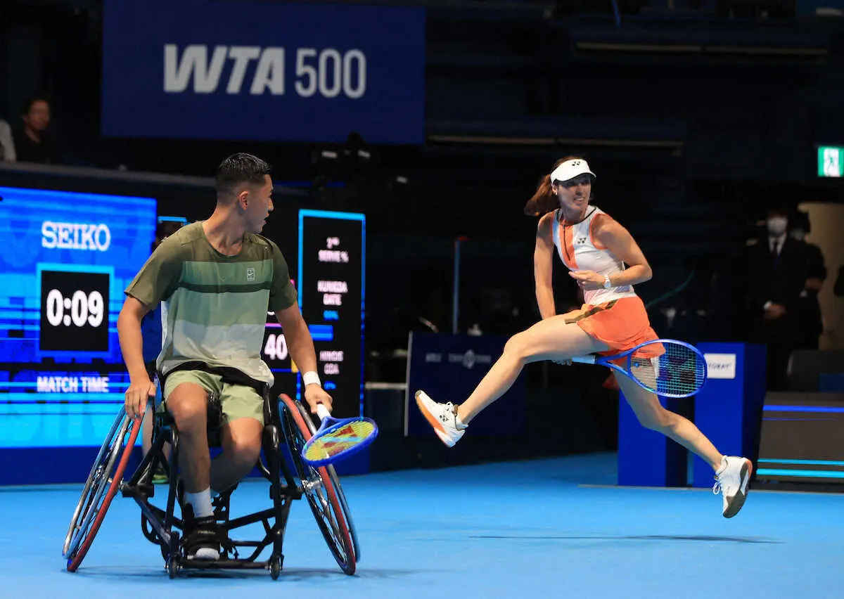 <東レPPOテニス2025 エキシビションマッチ >エキシビションマッチを行った(左から)小田、ヒンギス、伊達、国枝(撮影・西川祐介) Photo by スポニチ 小田凱人「メンツを見て凄くビックリした」 伊達公子さんら豪華メンバー… ギャラリーで見る この記事のフォト 2025年10月19日の画像一覧 もっと見る 2025年10月19日の画像をもっと見る