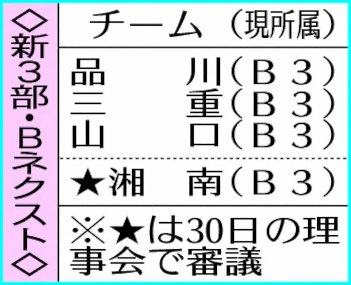 新2部「Bリーグ・ワン」参入クラブ Photo by スポニチ Bリーグ新2部「Bリーグ・ワン」 FE名古屋など25クラブの参戦決定 ギャラリーで見る この記事のフォト 2025年10月22日の画像一覧 もっと見る 2025年10月22日の画像をもっと見る