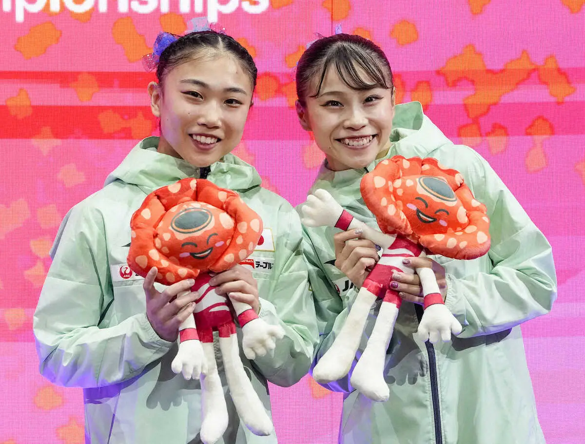 女子個人総合で6位の岸里奈(左)と7位の杉原愛子