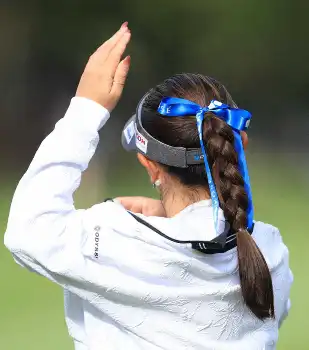 「私はゴルフを通して幸せを届けたい。リボンを替えたりピアスを替えたり、目でも女子ゴルフを楽しんでもらいたい」。リボンもプロ意識の証。この日は青いリボンで67をマークし4位まで順位を上げた。「少しでも(佐久間)朱莉ちゃんに近づきたい。関西のギャラリーさんにいいプレーを届けたい」。最終日もリボンを風になびかせて華麗なゴルフを披露する。