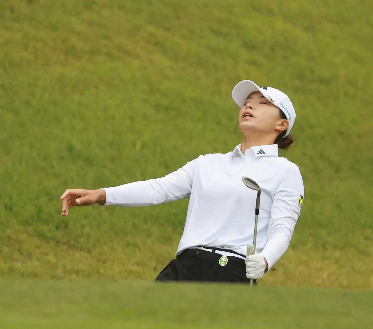 前半を1オーバーで折り返し、後半の1番でバーディーを奪ったものの、3番で3パットのダブルボギー。終盤7番で4~5メートルを沈めてバーディー。「なんでもいいって思って打ったらドンガラガッシャンって入りました」と、9番で7メートルのパーパットねじ込んだ。