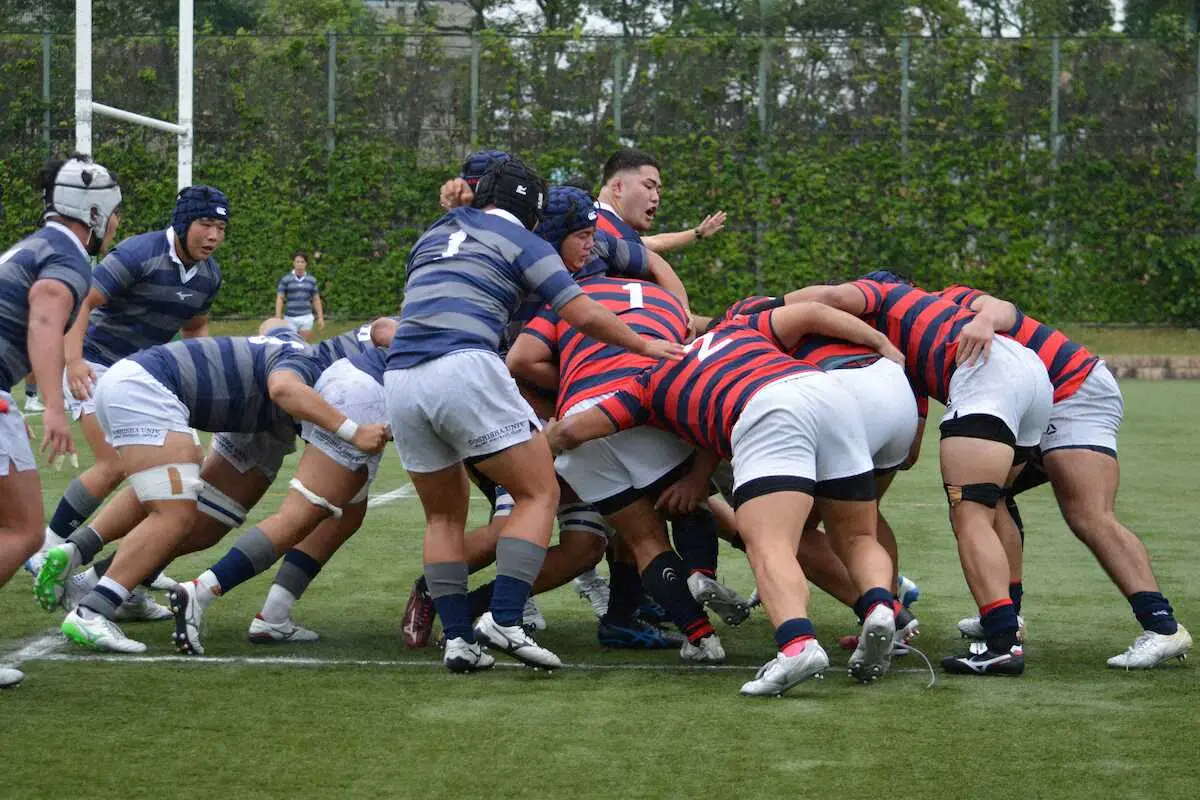 課題も露呈したが、京産大が逆転勝利を飾った。ひたむきに向かってくる同大の圧力を受け、開始から2連続トライを許す苦しい立ち上がり。逆転して前半を折り返したが、後半開始も再び2連続トライを献上して21―26とされた。劣勢に立たされてから底力を発揮して4連続トライで突き放したとはいえ、笑顔の少ない1勝だった。