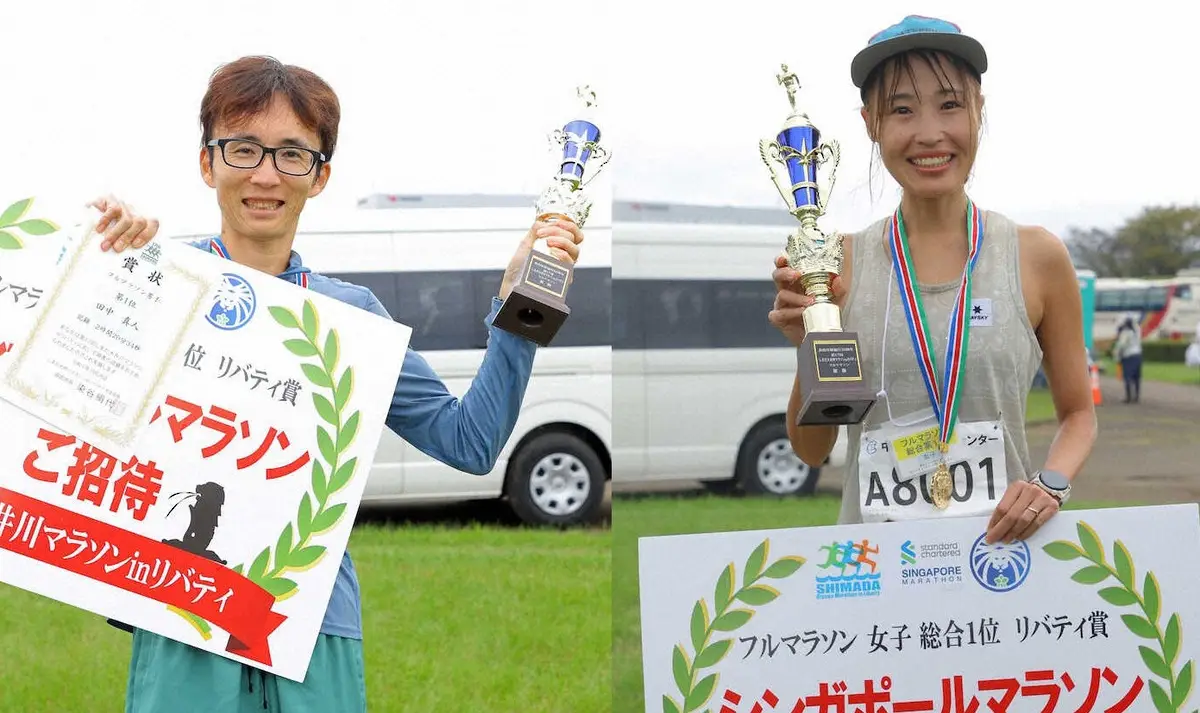 「島田市制施行20周年第17回しまだ大井川マラソンinリバティ」(スポニチ共催)は26日、静岡県島田市役所前をスタートし、大井川沿いのマラソン専用コース「リバティ」を経て同市陸上競技場をゴールとする42・195キロなどに8533人がエントリーして行われた。男子フルマラソンは田中真人(43=静岡)が2時間20分34秒、女子フルマラソンは沼田夏楠(34=茨城)が2時間49分19秒でともに初優勝。男子10キロは杉山喜紀(26=静岡)が31分0秒、女子10キロは森野夏歩(30=静岡)が37分45秒で、こちらも初制覇となった。