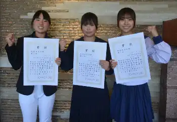 賞状を手に笑顔の高校男子上位3人(左から)稲葉、後藤輝、中林
