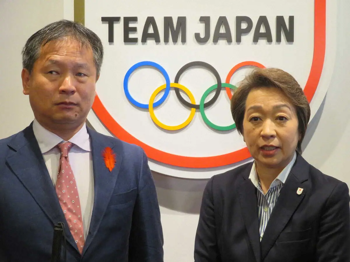 スポーツ庁の河合純一長官(左)と日本オリンピック委員会の橋本聖子会長