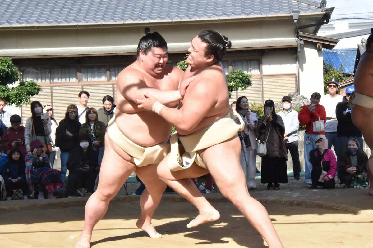 大相撲の時津風一門が3日、福岡県志免町の時津風部屋で連合稽古を行い、5日で34歳となる元大関の正代が前倒しで手荒い祝福を受けた。申し合い稽古が終わると霧島らが胸を出し、年齢の数だけぶつかる粋なプレゼントが用意された。