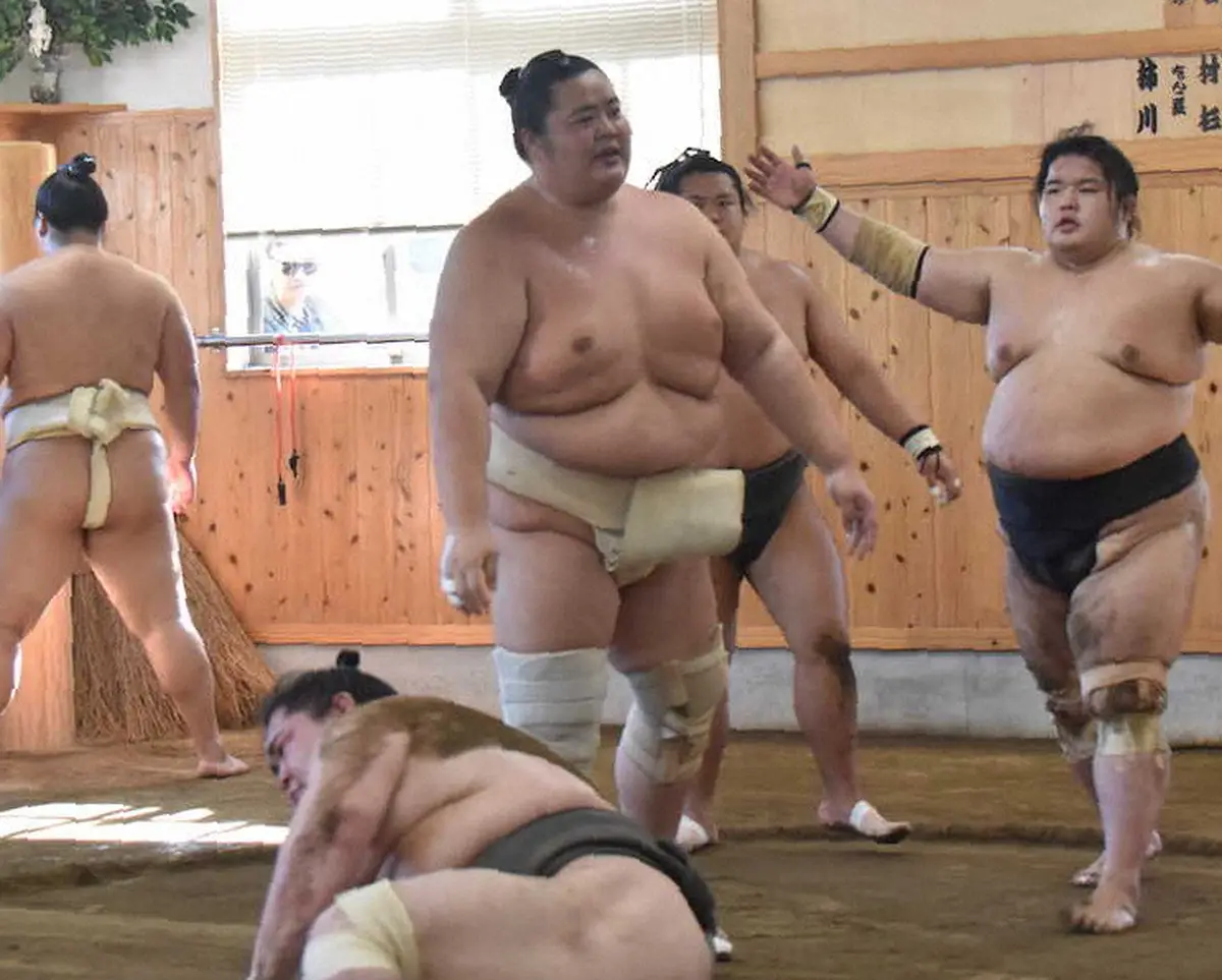 この日は福岡市東区の佐渡ケ嶽部屋で三段目の力士らに胸を出した。古傷の左膝にもサポーターを装着していたが、表情に悲愴(ひそう)感はない。「明日のお楽しみ」と出場に関しては明言を避けつつも「状態は普通。やるべきことをやるだけ」と表情は穏やかだった。