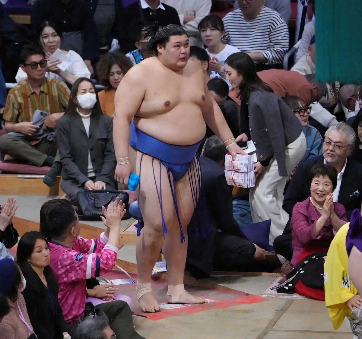 大の里は5場所連続で白星発進とした。立ち合いから体当たりで高安の突き押しをものともせず、右を差して力強く寄り切った。「しっかり落ち着いて対応できて良かった。また明日集中してやっていきたい」と話した。