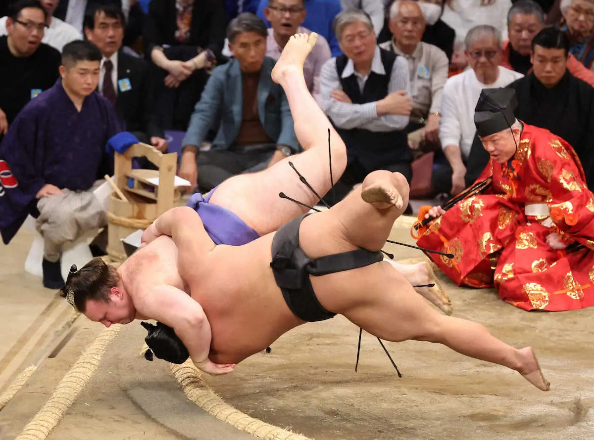 40歳の玉鷲が「首捻り」で25歳の平戸海を横倒しに 3年前は宇良に「合掌捻り」