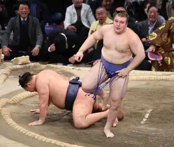 今場所は13日目に大の里との際どい一番に敗れて3敗に後退したが、14日目に豊昇龍に初対戦から3タテを食らわせて11勝で並び、優勝争いに踏みとどまった。