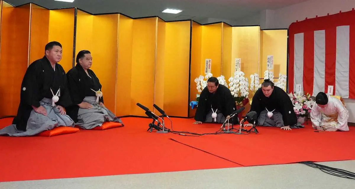 大相撲の関脇・安青錦(21)=本名ダニーロ・ヤブグシシン、安治川部屋=が26日、福岡国際センターで行われた日本相撲協会の初場所(来年1月11日初日・両国国技館)番付編成会議と臨時理事会で大関昇進が満場一致で正式決定し、福岡県久留米市の部屋で行われた昇進伝達式で「大関の名に恥じぬよう、またさらに上を目指して精進します」と口上を述べた。使者は同じ伊勢ケ浜一門の理事・浅香山親方(元大関・魁皇)と一門の審判部・大島親方(元関脇・旭天鵬)が務めた。