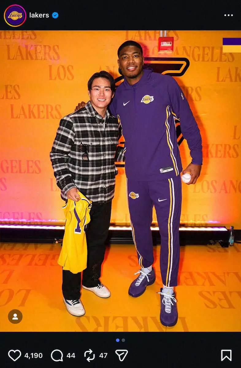 この日の試合前にはドジャース・山本由伸投手(27)と対面が実現。レイカーズの公式インスタグラムでは「Yamamoto×Hachimura」とつづり、山本と八村との2ショットそして背番号18のレイカーズ特別ユニホームを手にした山本のソロショットを投稿した。山本はそのままコートサイドで生観戦した。
