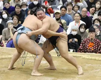 この日は関脇・王鵬(25=大嶽部屋)や幕内・霧島(29=音羽山部屋)らと6番取って2勝4敗。頭をつけて攻め込むなど存在感を発揮し、「(相撲を)取ろうか迷ったけど、たくさん来ていただいたので」と振り返った。