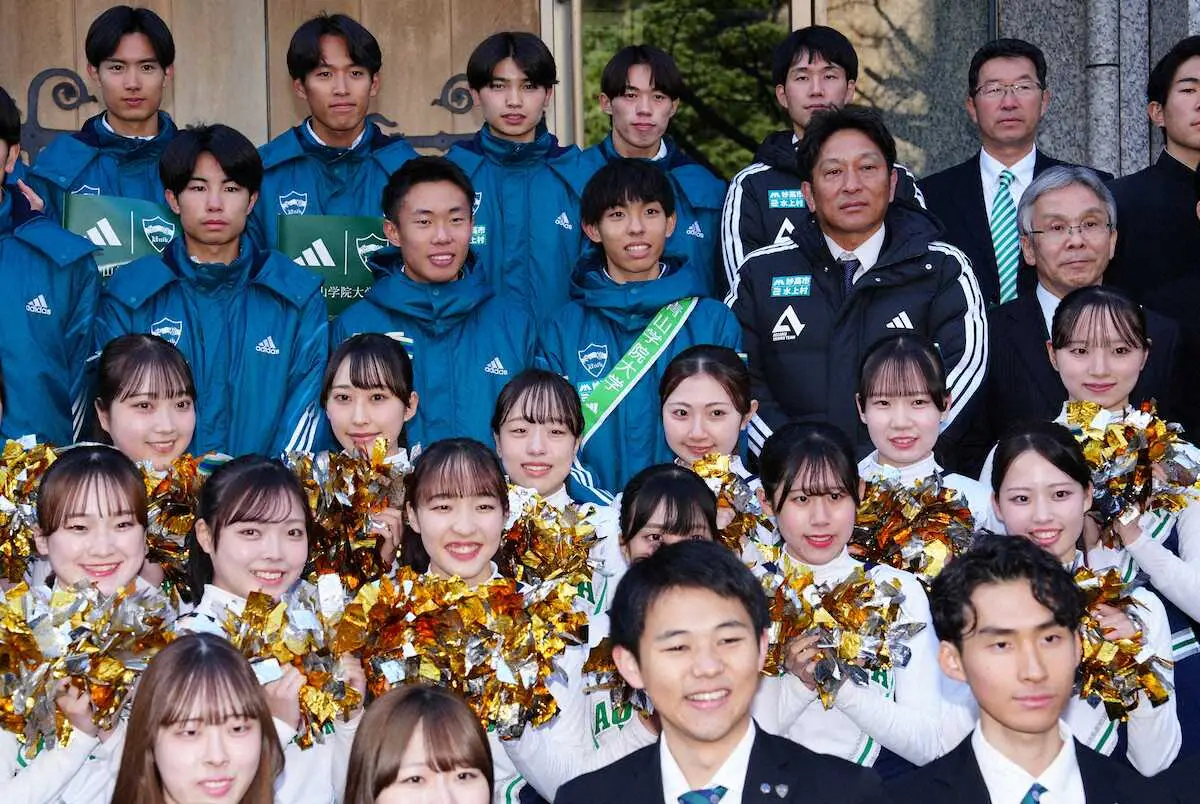 第102回箱根駅伝で3連覇を目指す青学大が11日、都内の青山キャンパスで壮行会と会見を行った。